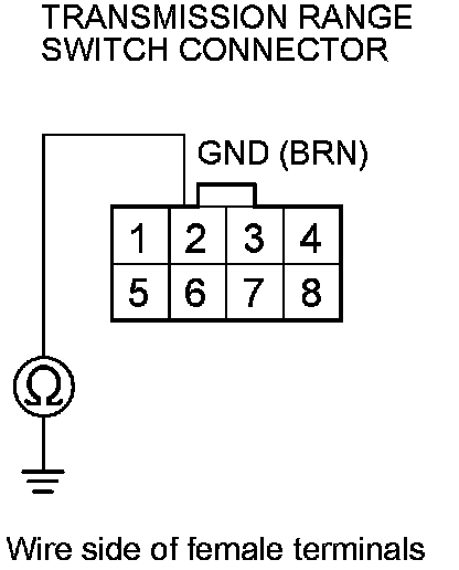 32. Check for continuity between transmission range switch connector terminal No. 2 and body ground.