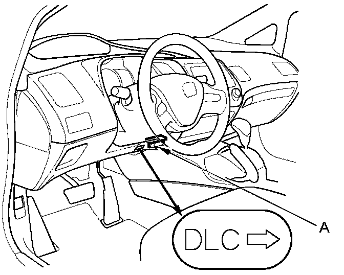 4. Turn the engine off, and connect the HDS to the DLC (A) located under the driver's side of the dashboard.