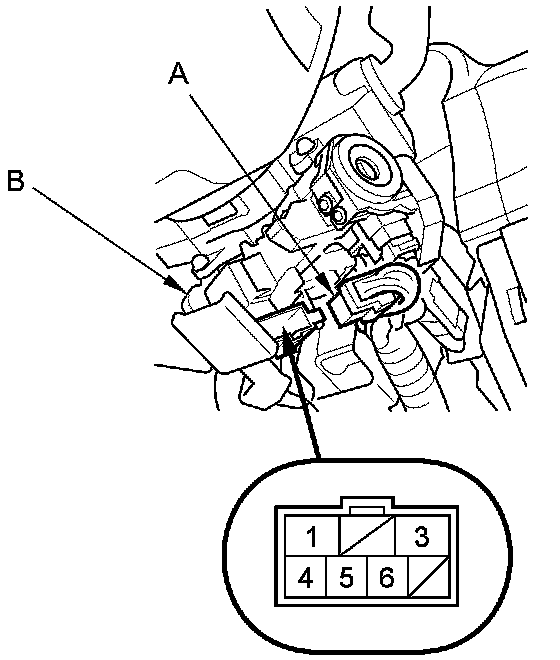3. Disconnect the 7P connector (A) from the ignition switch (B).