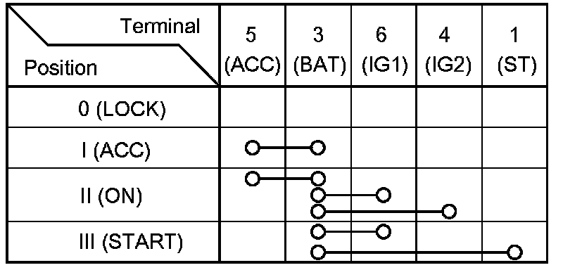 5. If the continuity is not as specified, replace the ignition switch Service and Repair.