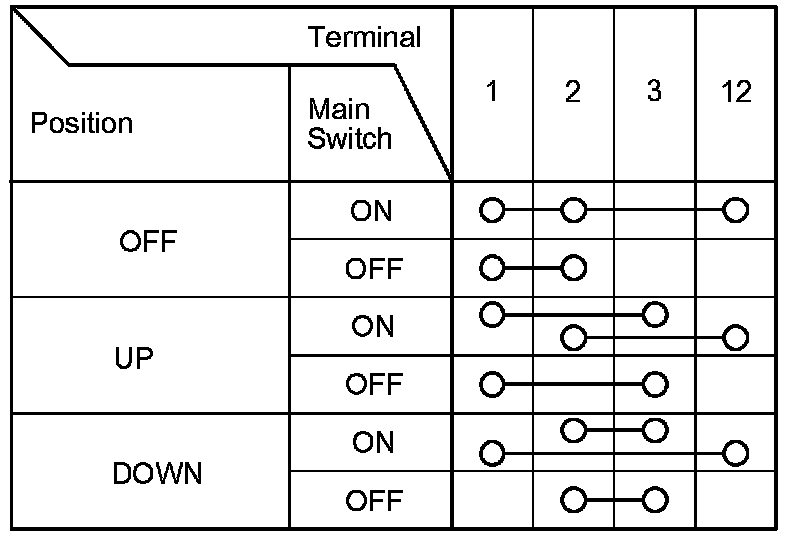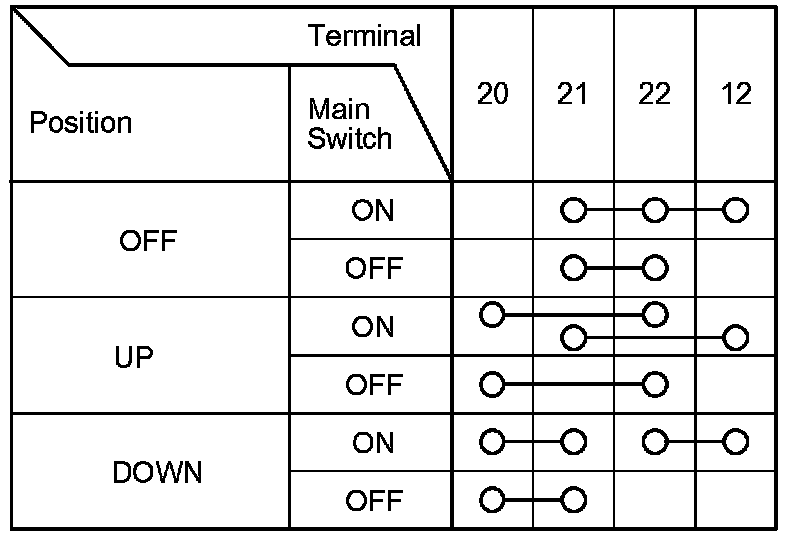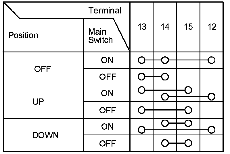 2. Check for continuity between the terminals in each switch position according to the tables.