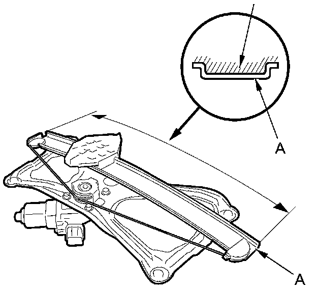 5. Apply multipurpose grease to all the sliding surfaces of the regulator (A) where shown.