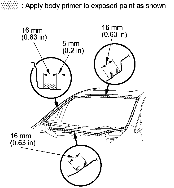 - Never touch the primed surfaces with your hands. If you do, the adhesive may not bond to the windshield properly, causing a leak after the windshield is installed.