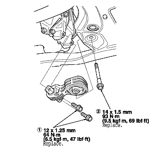 16. Install the lower torque rod, then tighten the new lower torque rod mounting bolts in the numbered sequence shown.