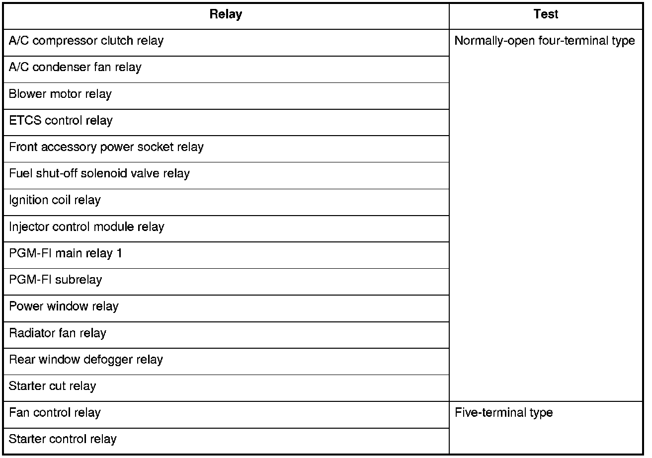 - There should be continuity between terminals No. 1 and No. 2 when the battery power is connected to terminal No. 5, and body ground is connected to terminal No. 3.