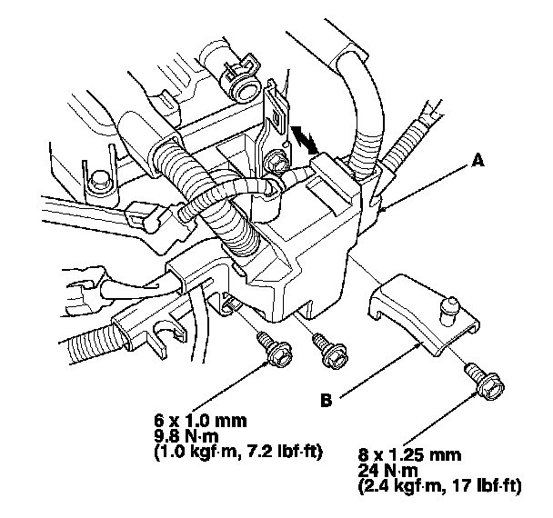 2. Remove the air cleaner bracket (A), then remove the harness holder (B) from the cylinder head.