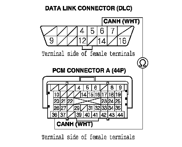 32. Check for continuity between PCM connector terminal A37 and DLC terminal No. 14.