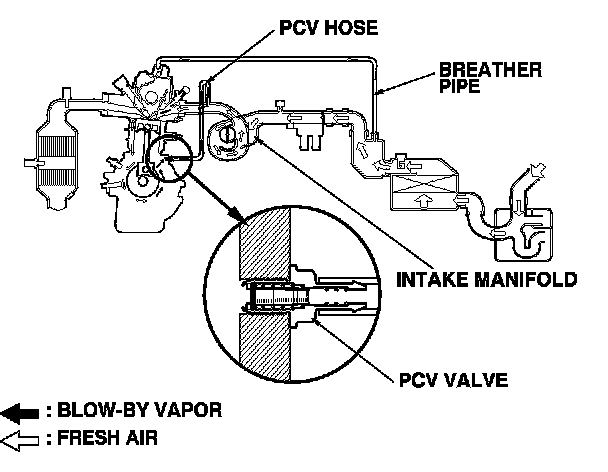 The PCV valve prevents blow-by gasses from escaping into the atmosphere by venting them into the intake manifold.