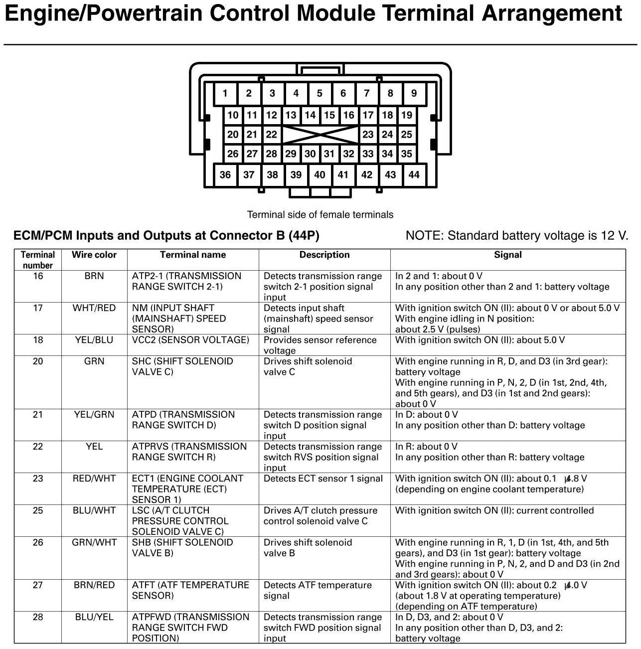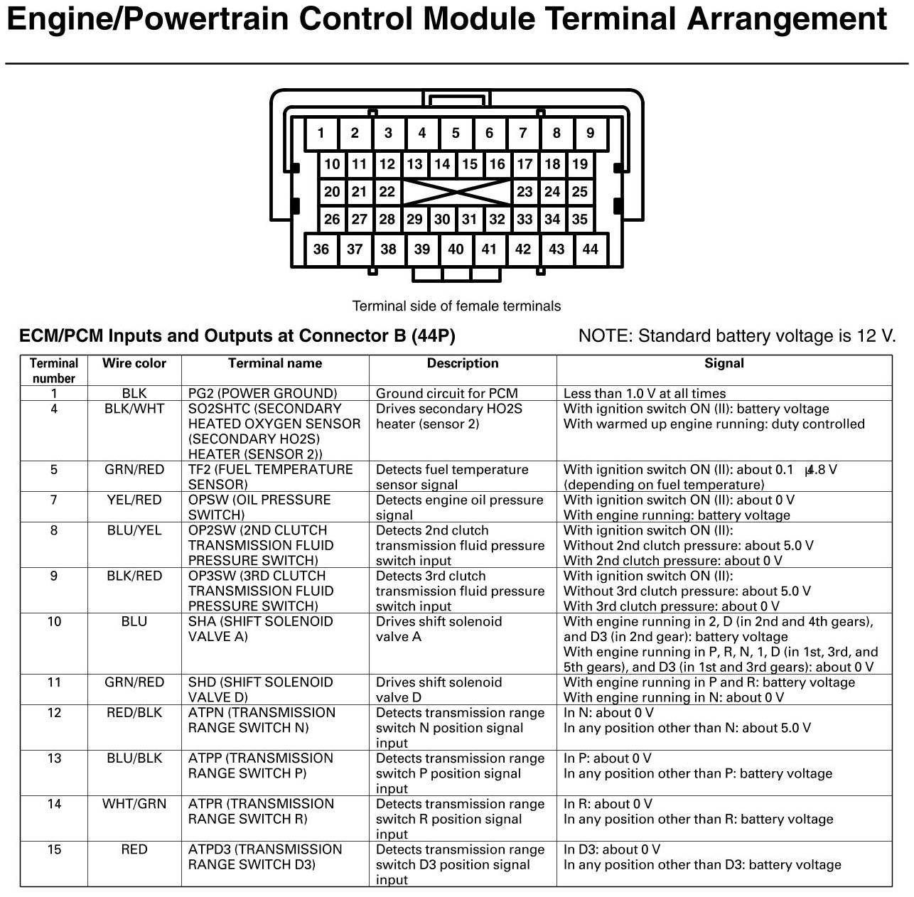 ECM/PCM Inputs And Outputs At Connector B (GX)