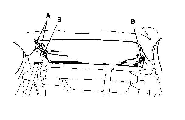 2. Disconnect the window antenna connectors (A) and the rear window defogger connectors (B).