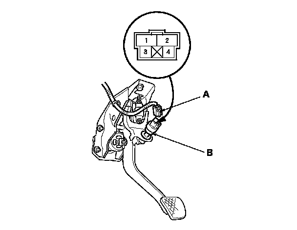 1. Disconnect the 4P connector (A) from the brake pedal position switch (B).