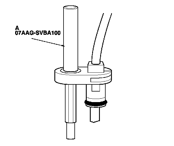 5. Insert the guide pin tool (A) into the wheel speed sensor bolt hole until the shoulder of the tool contacts the wheel speed sensor bracket.