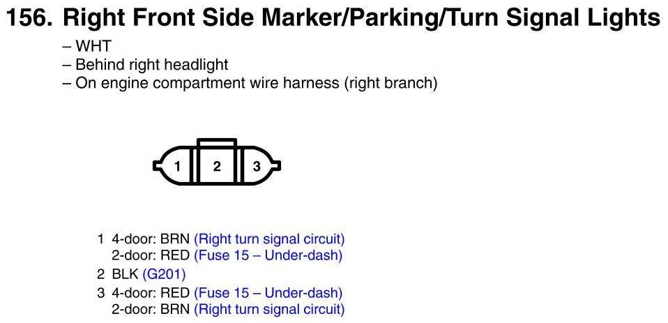 View 156 - Right Front Side Marker/Parking/Turn Signal Light Connector View