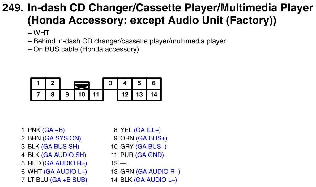 View 249 - In-Dash CD Changer/Cassette Player/Multimedia Player Connector View (Honda Accessory: except Audio Unit (Factory))