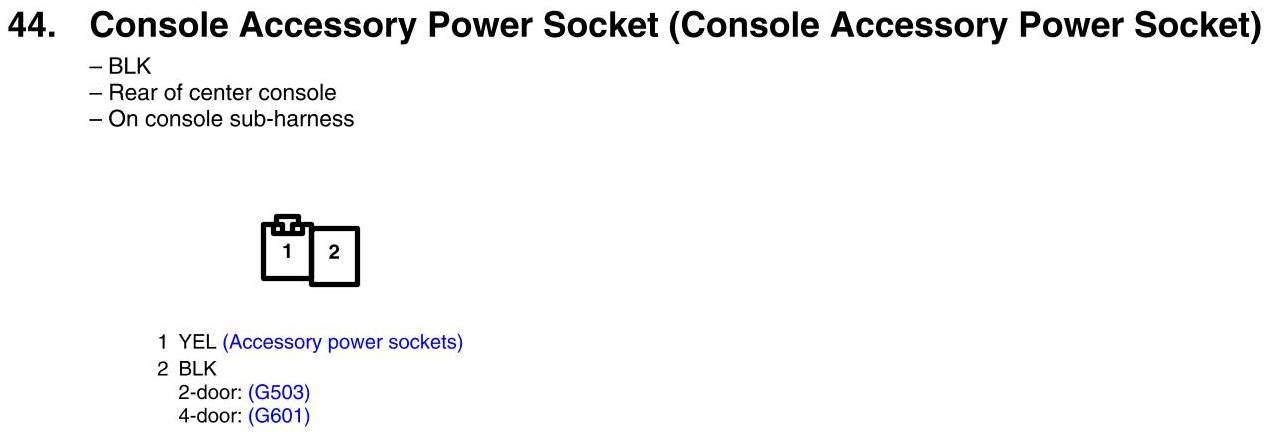 View 44 - Console Accessory Power Socket Connector View (Console Accessory Power Socket)