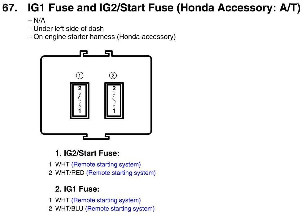 IG1 And IG2/Start Fuse Connector View (Honda Accessory: A/T)