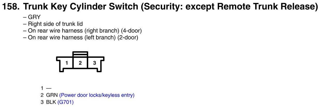 Trunk Key Cylinder Switch Connector View (Security: except Remote Trunk Release)