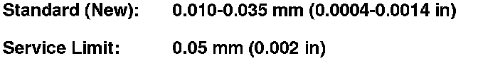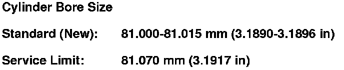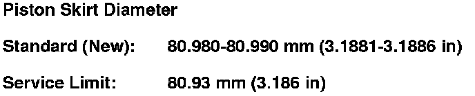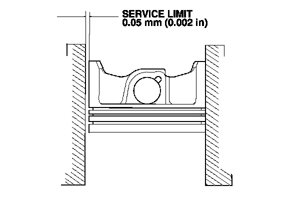 7. Calculate the difference between the cylinder bore diameter and the piston diameter. If the clearance is near, or exceeds the service limit, inspect the piston and the engine block for excessive wear.