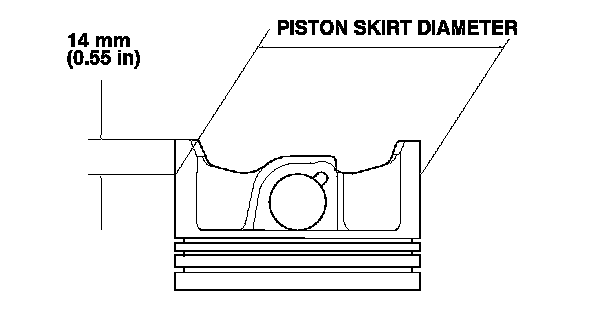 3. Measure the piston skirt diameter at a point 14 mm (0.55 in) from the bottom of the skirt.