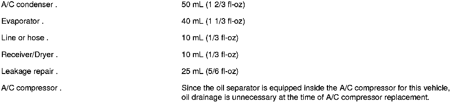 It is important to have the correct amount of refrigerant oil in the A/C system to ensure proper lubrication of the A/C compressor. Too little oil damages the A/C compressor; too much oil reduces the cooling capacity of the system, and can produce high vent temperatures.