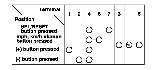 3. Check for continuity between the terminals in each switch position according the table.