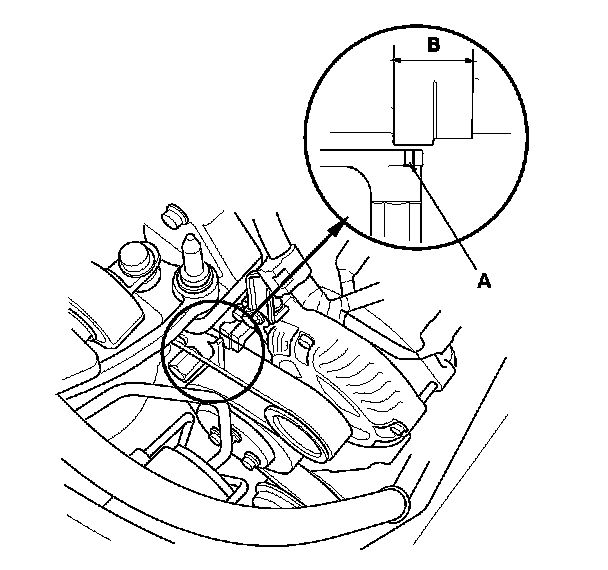 2. Check the position of the auto-tensioner indicator pointer (A) is within the standard range (B) as shown. If it is out of the standard range, replace the drive belt. Service and Repair