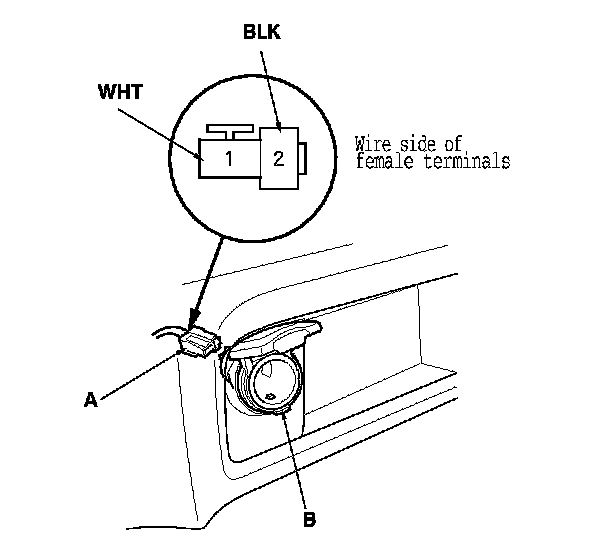 2. Disconnect the 2P connector (A) from the front accessory power socket (B).