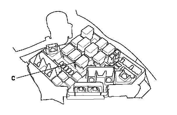 68. Remove PGM-FI main relay 1 (C) from the under-hood fuse/relay box.