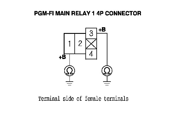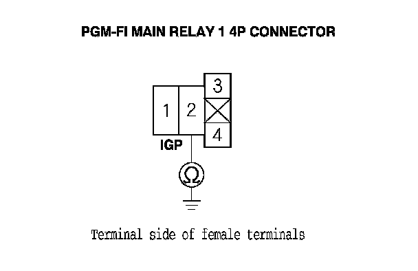 46. Check for continuity between PGM-FI main relay 1 4P connector terminal No. 2 and body ground.