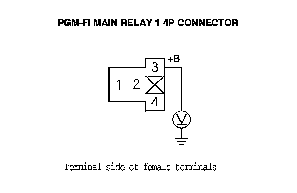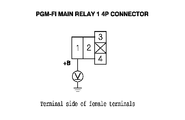 69. Measure the voltage between PGM-FI main relay 1 4P connector terminal No. 1 and body ground.