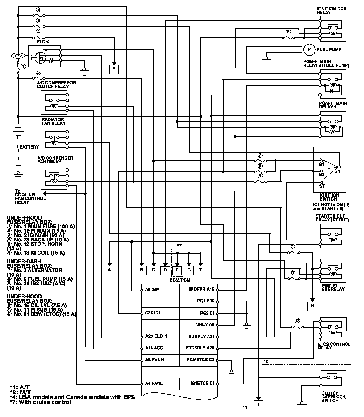 After the ignition switch is turned to LOCK (0), the ECM/PCM stays on (about 40 minutes). If the ECM/PCM connector is disconnected during this time, the ECM/PCM may be damaged. To cancel this mode, disconnect the negative cable from the battery or jump the SCS line with the HDS after the ignition switch is turned to LOCK (0).