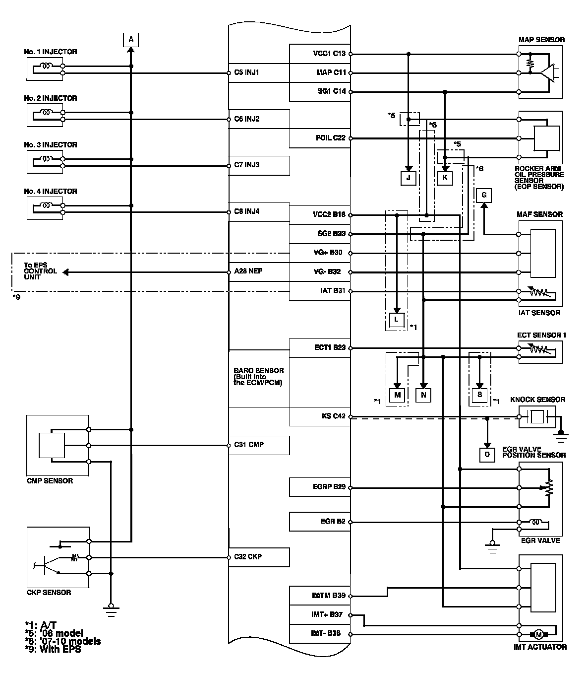 ECM/PCM Inputs and Outputs at ECM/PCM Connector A (square) (44P)