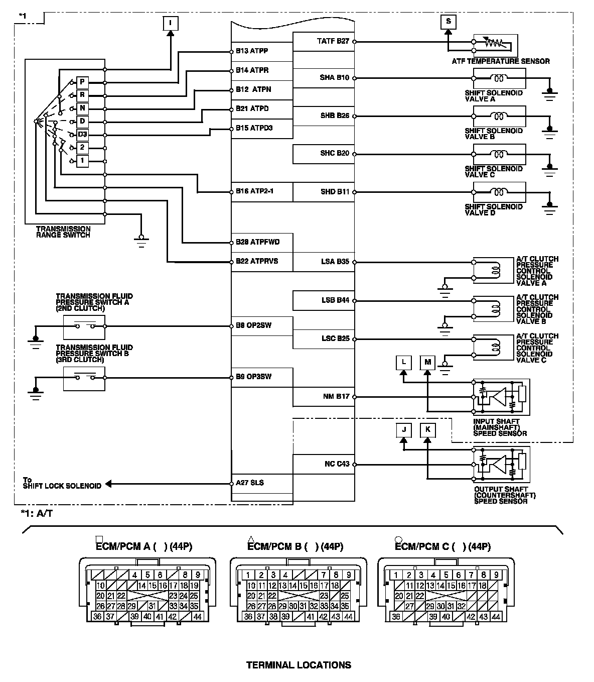 ECM/PCM Inputs and Outputs at ECM/PCM Connector B (triangle) (44P)