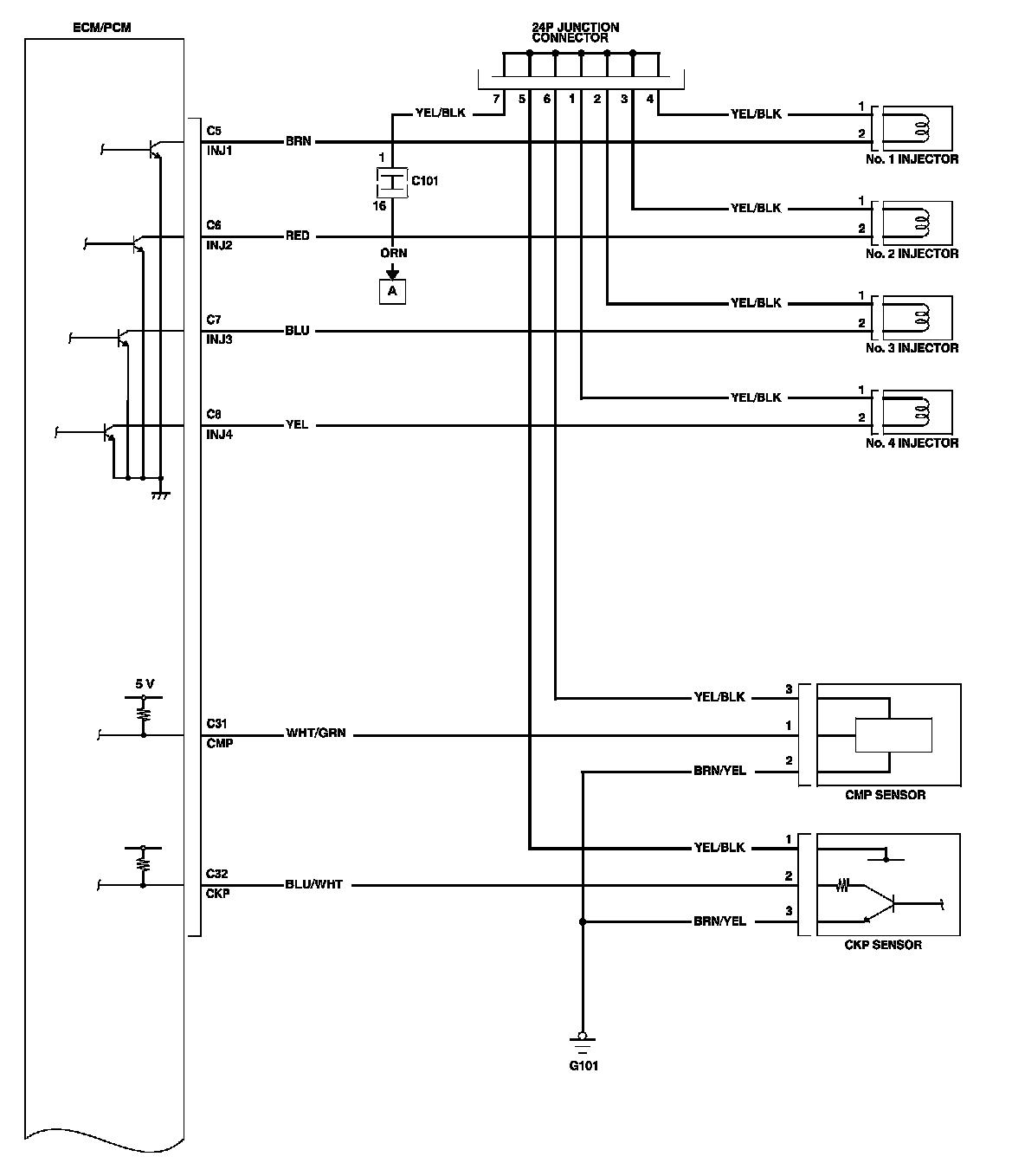 ECM/PCM Inputs and Outputs at ECM/PCM Connector C (circle) (44P)