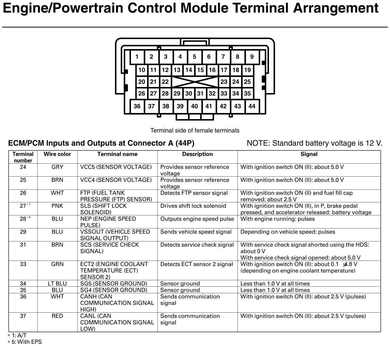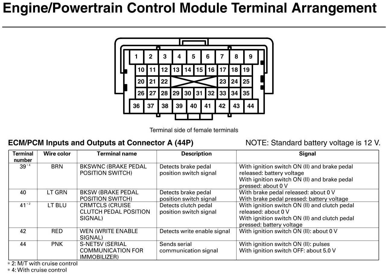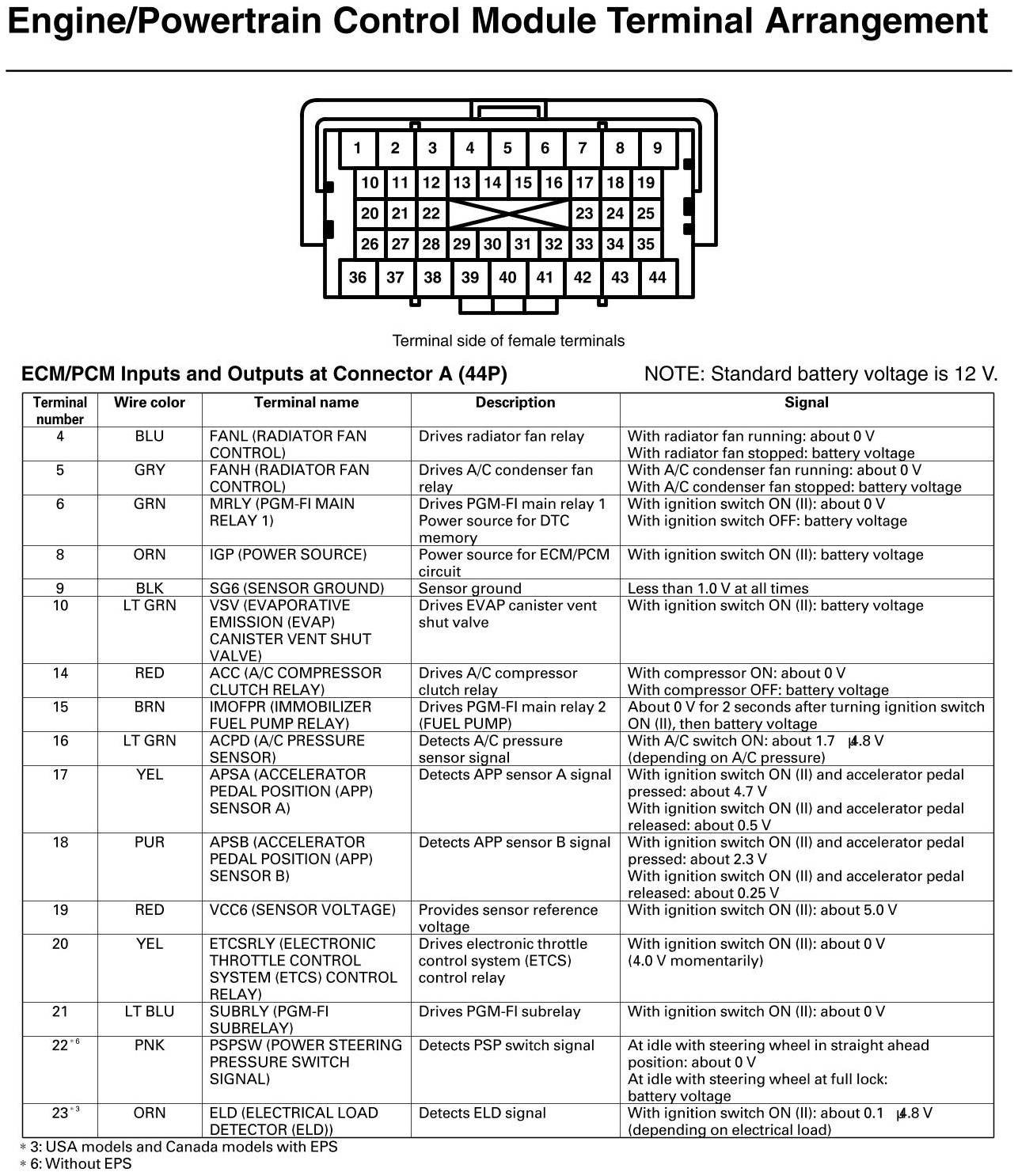 ECM/PCM Inputs And Outputs At Connector A (except Si, GX)