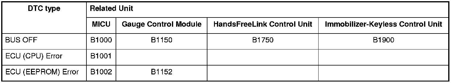 When an ECU on the CAN circuit is unable to communicate with the other ECUs on the B-CAN and F-CAN circuits, the other control units will set loss of communication DTCs. Use this chart to find the control unit that is not communicating with the other control units on the CAN circuit.