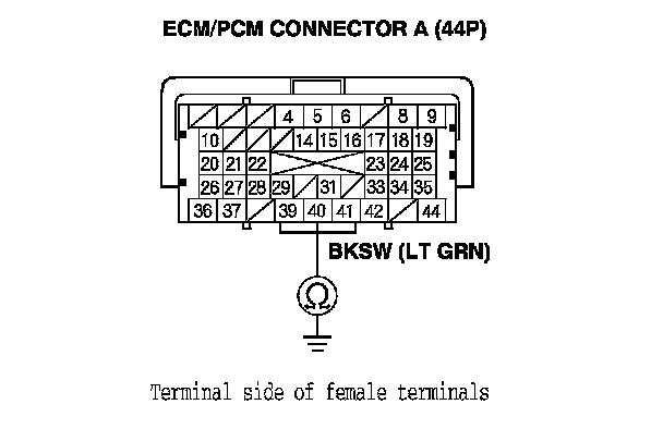 8. Check for continuity between ECM/PCM connector terminal A40 and body ground.
