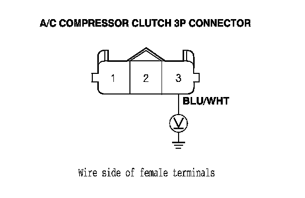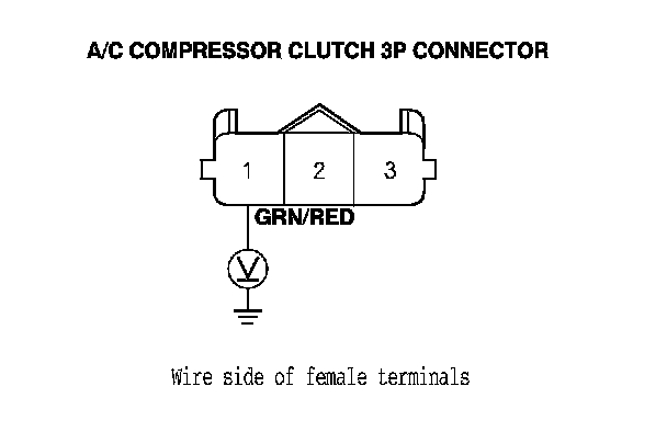 K20Z3 engine: Measure the voltage between A/C compressor clutch 3P connector terminal No. 1 and body ground.