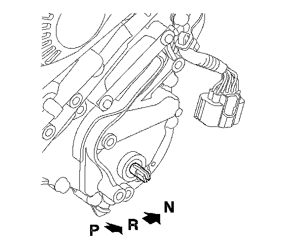 5. Make sure the selector control shaft is in the N position. If necessary, move the shift lever to N from P.