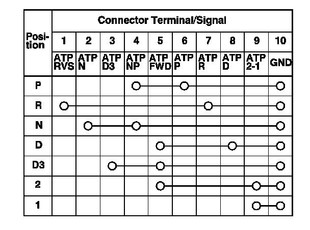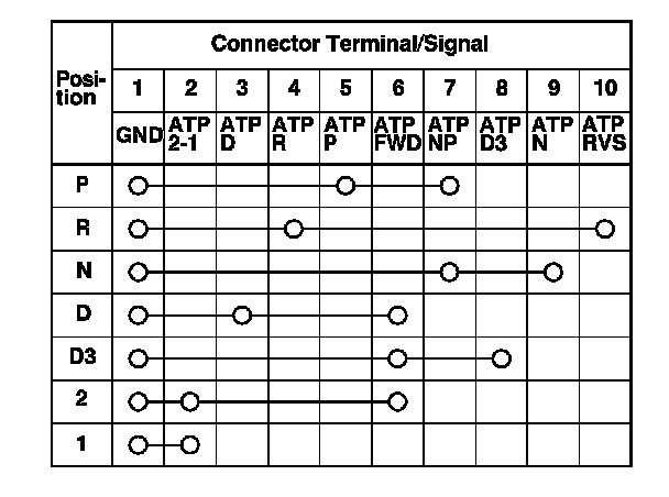 3. Check for continuity between terminals at the harness connector. There should be continuity between the terminals in the following table for each switch position.
