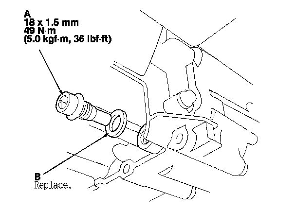 5. Remove the drain plug (A), and drain the automatic transmission fluid (ATF).