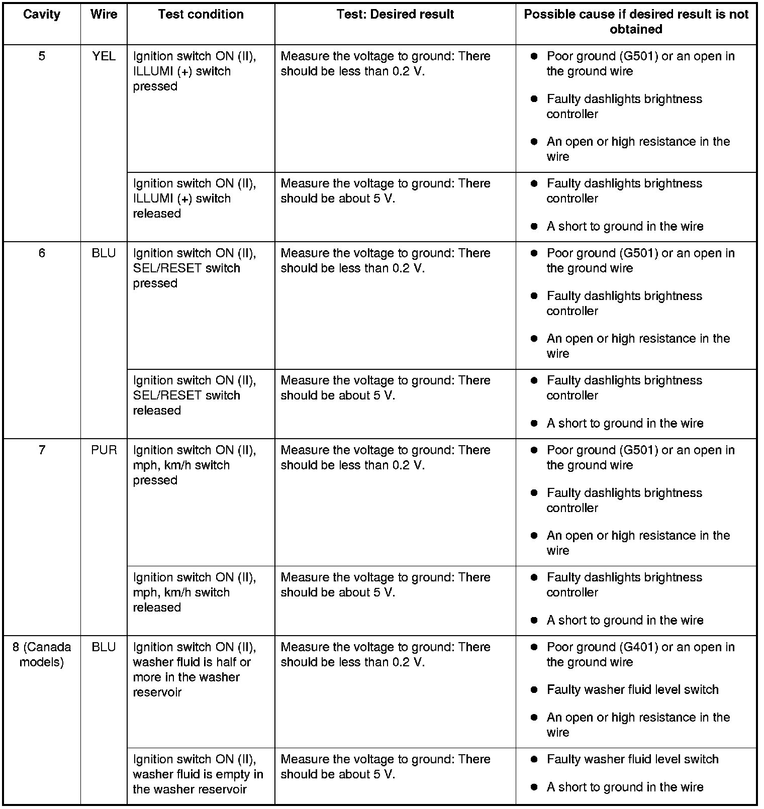 5. Reconnect the connector to the gauge control module (tach), and do the following input tests: