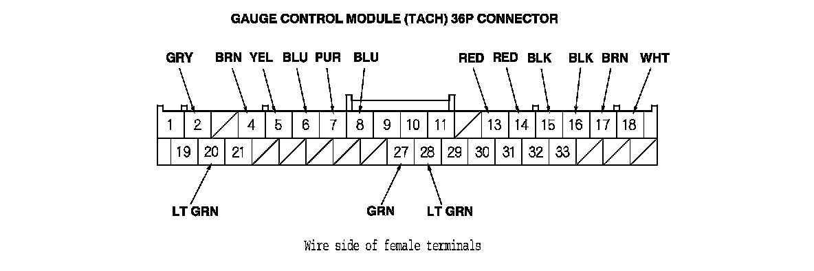 2. Remove the gauge control module (tach) and disconnect the 36P connector from it. Gauge Control Module Replacement