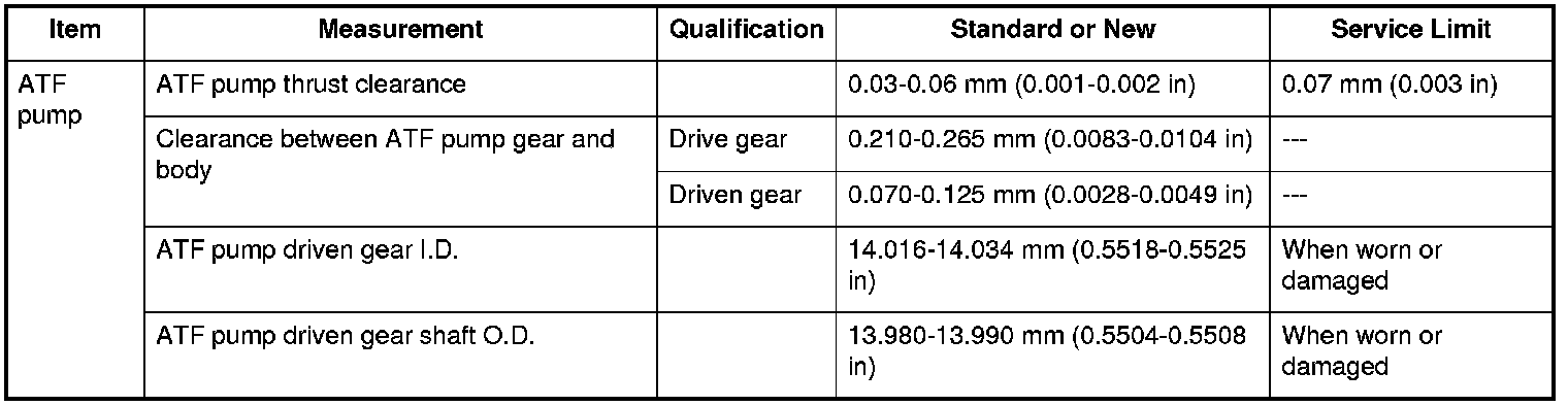 ATF Pump Specifications