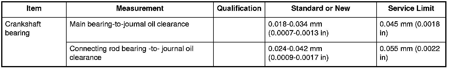 Crankshaft Bearing Specifications