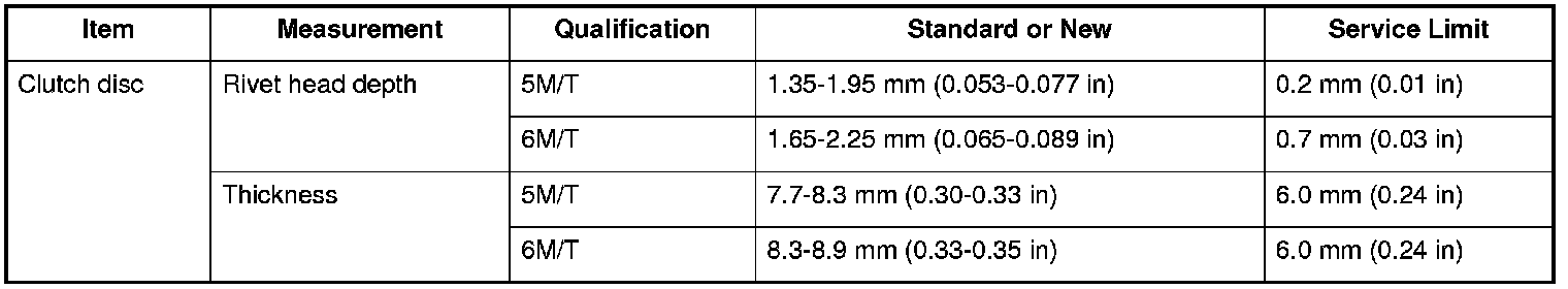 Clutch Disc Specifications (M/T)
