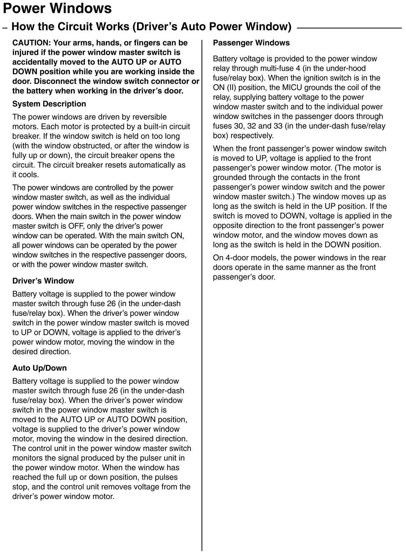 How the Power Windows Circuit Works