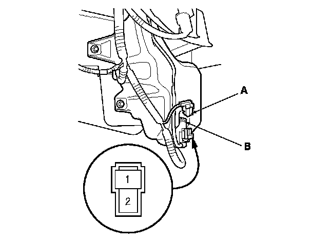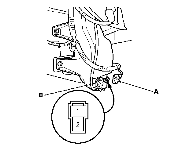 2. Disconnect the 2P connector (A) from the windshield washer motor (B).