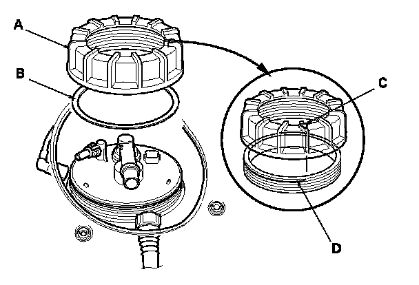 NOTE: To prevent a fuel leak, check the base gasket, visually or by hand, to make sure it is not pinched.