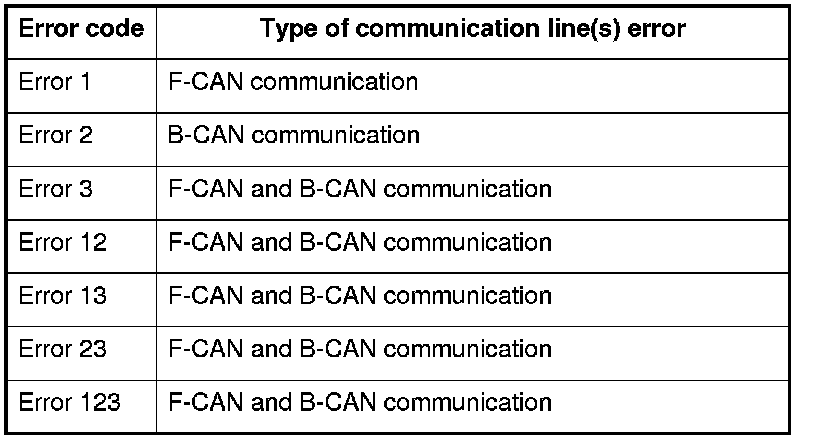When any of the data from the B-CAN circuit cannot be received within a specified time, or an unusual combination of data is recognized, the MICU moves to the software fail-safe mode. The data that was not received is forced to a pre-programmed value.